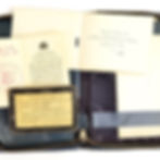 Original Second World War Royal Canadian Air Force (RCAF) grouping to Airman E.W. Chambers. The group includes a single identification disc on the original neck string, three "Canada" shoulder titles with one being the printed canvas type produced in England, two Leading Aircraftman insignia, tiny RCAF emblem, RCAF Christmas card, New Testament, Registration Certificate with Chambers information, and personalized blue notebook with some paper still in it. Potential research project, we haven't done any further research since obtaining it. Nice affordable RCAF Airman group. $75 *Reduced* $60