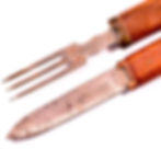 Original First World War Officer's field fork & knife set. The fork and knife are protected in a wooden sleeve. This set has seen considerable use and one of the wood handles is a bit loose, but overall, it is in good condition. The knife's blade is maker marked, and the set still slides together. Interesting set of utensils from the trenches. $95