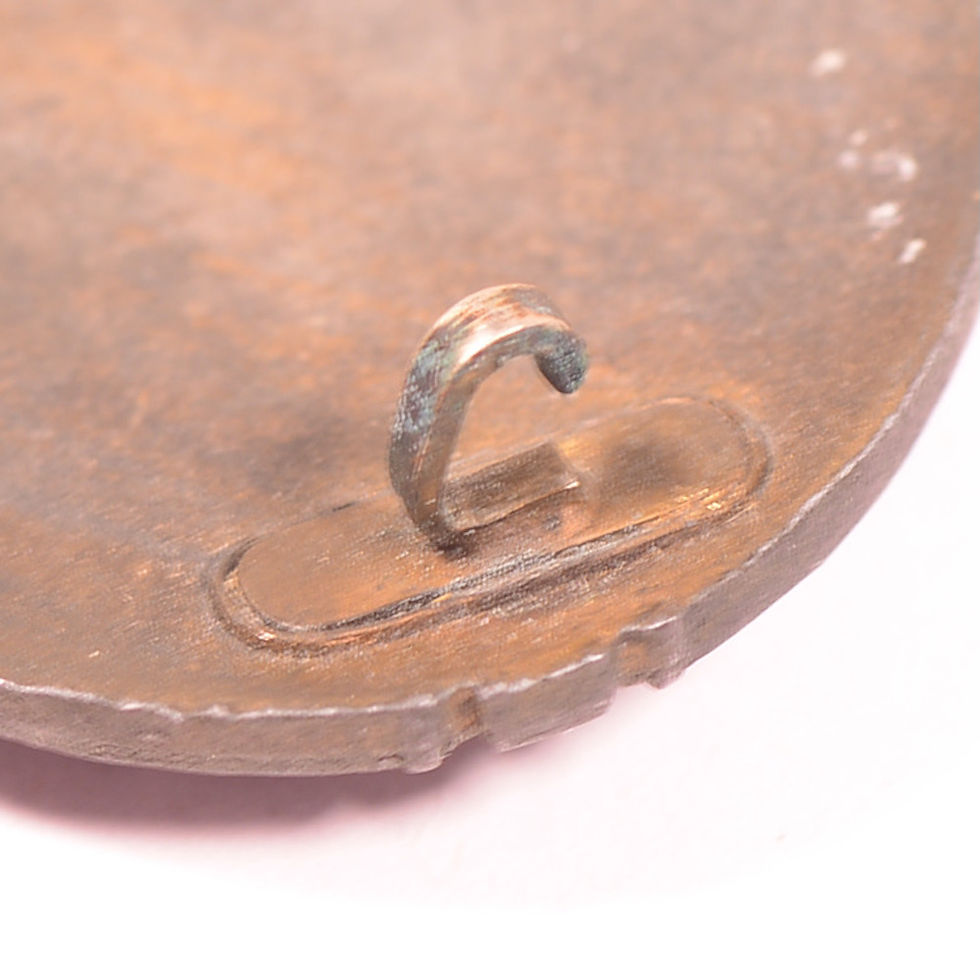 Original Second World War German Anti-Aircraft Flak Battle Badge. This is a two-piece badge constructed of zinc with solid back and no makers information. The construction and materials suggest late-war production. The pin is a little bit bent and there’s some zinc pitting near the reverse, but overall it’s a nice honest example. $275