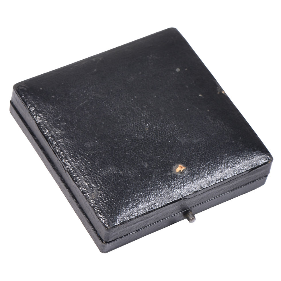 Original Second World War German Luftwaffe (Air Force) Observer's badge in case of issue. Awarded to those who participated in five operational flights over enemy territory or a minimum of two months active service. Two piece construction with desirable stylized "A" maker mark on reverse, representing the firm F. W. Assmann & Söhne of Lüdenscheid. Both the award and case are in good condition showing some age, patina, and oxidation that has never been cleaned. The badge appears to have been lightly worn. All components are in working over, including the closure clasp on the box and pin on reverse of the award. A nice set with great details. $1150