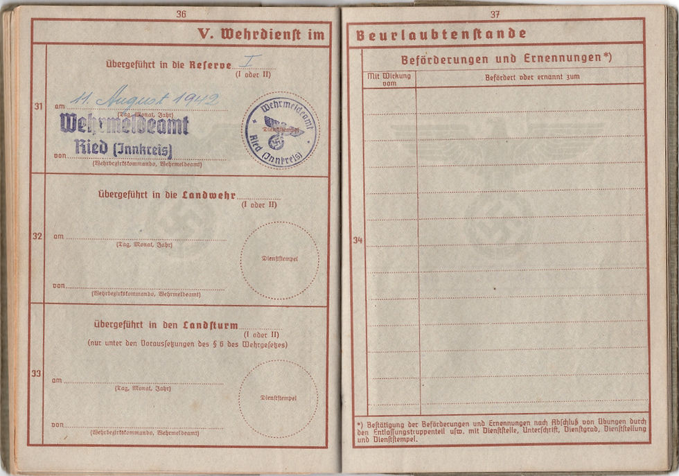 #PJ21 Wehrpass, Franz Hingerz, 36 & 373 Infantry Division, KIA